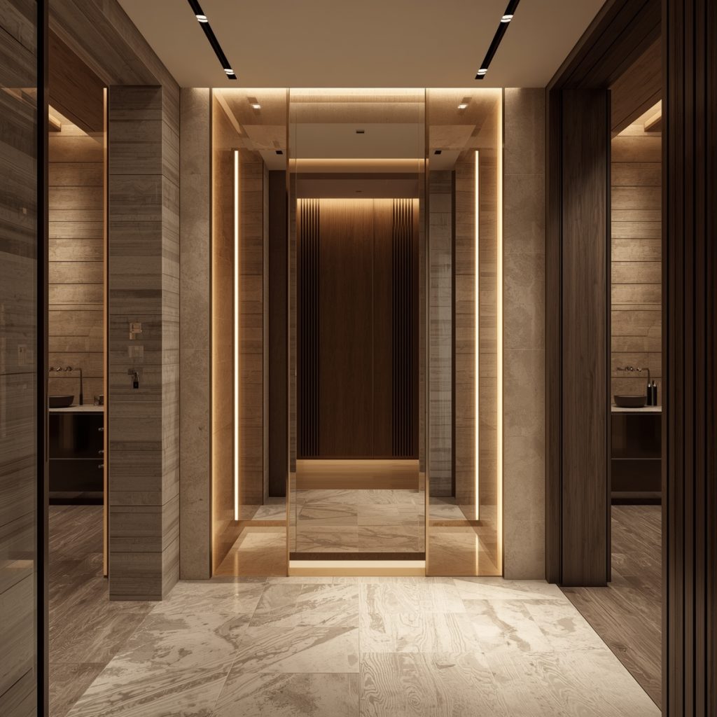Espacios donde el espejo se diseña desde el origen, integrándose de forma natural en la idea del proyecto.